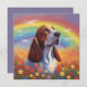 A personalized Basset Hound memorial sympathy card with a beautiful painting of a Basset Hound on a heavenly hill with a beautiful rainbow overhead. Symbolizing the Basset Hound dog has passed the rainbow bridge to doggy heaven. You can personalize it with your own Basset Hound dog's name or any other text on the back side of the card. Makes a special memorial or sympathy gift for any Basset Hound dog lover if their dear dog has passed.