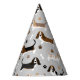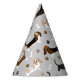 Cute Basset Hound dogs with brown, black, white and lemon coats with scattered dog bones and paw prints fun dog pattern.