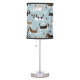 The lamp looks exactly like the picture, bright and colorful. The lamp shade is plastic not what I expected, however I love it! The printing is clear and the name can easily be read.