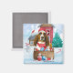 Basset Hound Dog In snow Christmas Dog House Magnet