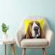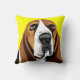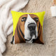 Sad eyes Basset Hound with big ears, yellow background on pillow can be customized