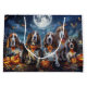 Unleash the spooky spirit with this eerie Halloween design featuring a pack of dogs under a dark, moonlit sky, surrounded by flying bats and glowing pumpkins. Perfect for those who love a touch of frightful fun with their furry friends!