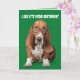 Cute Basset Hound wearing prescription glasses and saying, "I see it's your birthday!." Inside the cards says, "You don't need 2020 vision to see that you're older today. Happy Birthday!" Ooooo, that might be too harsh. All text is customizable so you could say something more complimentary like, "You look marvelous!" Colored background is also customizable.