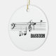 Lightweight, smooth, pure white ornament with nice sheen. Perfect size to be seen from across the room ... and to attract closer inspection! Price was great for ordering enough for the whole family! Clear, bold black design just as requested. Matches the order exactly. Just so nice!