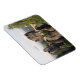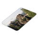 Rectangular souvenir photo magnet of the stone Bastei Bridge (Bastei Brücke) over the Elbe river connecting the iconic rock formations of the Elbe Sandstone Mountains near Dresden in the national park Saxon Switzerland (Sächsische Schweiz) in east Germany.