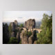 Poster print of the stone Bastei Bridge (Bastei Brücke) over the Elbe river connecting the iconic rock formations of the Elbe Sandstone Mountains near Dresden in the national park Saxon Switzerland (Sächsische Schweiz) in east Germany.