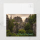 An evening photograph of the Bastei Bridge in the Sächsische Schweiz, Saxony, Germany is featured on this postcard.