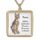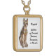 Medium square gold-finished necklace with an image of a brass statue of the Ancient Egyptian Goddess Bastet and a description of her on white. Bastet, known today as the "Cat Goddess", is the goddess of sensual pleasure, protector of the household, bringer of health, and the guardian saint of firefighters. See the entire Goddess Necklace collection in the PARTY FAVORS section.