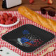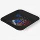 Cute blue ladybug in a beret and scarf celebrating Bastille Day with the Eiffel Tower and fireworks.