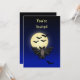 As the invitation depicts, it is getting dark / late as the sky turns from a deep blue to black. The full moon silhouettes the spooky critter sent as a messenger with your invitation.