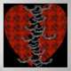 A red patterned heart cracks open and releases a flurry of bats. Great to wear on Halloween, out partying, or anywhere your unique and special style is admired and appreciated.