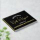 Let your favorite Bat Mitzvah be proud, rejoice and celebrate her milestone with this stunning keepsake scrapbook real gold foil guestbook. On the front, stunning, modern, sparkly gold foil handwritten script, Star of David and tiny dots overlay a dramatic black background. The customizable spine is real gold foil. And on the back, additional real gold foil confetti and Star of David overlay black. Personalize the custom text with her name and date of event. Choose from 3 real foil colors (gold, silver and rose gold), 3 sizes (9”x6”, 10.5”x8.25” and 12”sq) and 3 papers (blank white, lined white and black). Guaranteed to add stylish memories of her occasion. Matching and coordinating invites, envelopes, address labels, stickers, napkins and other Bat Mitzvah goodies are also available in this trendy and special collection.