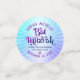 Add some extra style to your favorite Bat Mitzvah’s celebration party with this customizable table confetti! Fun, trendy, bold purple and navy blue typography with modern sans serif typography overlay a background of pop light turquoise and purple ombre gradient rays with white dots on one side. A white Star of David overlays a darker blue and purple pop background on the other. Personalize the custom text with your Bat Mitzvah’s name, date, and personalized message. Matching and coordinating invites, envelopes, address labels, stickers, banners and other Bat Mitzvah goodies are also available in this trendy and special collection.