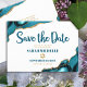 Bat Mitzvah Modern Turquoise Gold Agate Script Save The Date