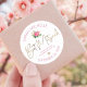 Bat Mitzvah Pink Floral Watercolor Gold Script Classic Round Sticker