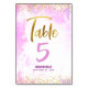 Bat Mitzvah Pink Watercolor Gold Script Glitter Table Number