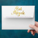 A graphic faux gold foil tree with sparkly turquoise, teal, purple and blue Star of David and dot “leaves” on a white background is on the front. Open up this envelope and you’ll find a graphic visual of graphic visual of a tiny, dark purple Star of David pattern overlaying a lighter purple background. The outside back flap boasts a faux gold foil script typography “Bat Mitzvah” and a purple, modern san serif typeface for the custom, pre-addressed, return address. Celebrate this milestone of your favorite Bat Mitzvah whenever you use this stunningly stylish and modern personalized envelope. Matching and coordinating invites, thank you notes, table cards, stickers and other Bat Mitzvah goodies are also available in this trendy and special collection.