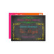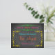 Bat Mitzvah save the date postcard on chalkboard look background with neon green, pink, orange, yellow, and aqua text and scrolls.