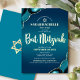 Be proud, rejoice and showcase this milestone of your favorite Bat Mitzvah! Send out this cool, unique, modern, personalized, Hebrew name invitation for an event to remember. Real gold foil script typography, white sans serif typography, and a real gold foil Star of David overlay a deep turquoise teal blue ombre background with turquoise blue agate accented with real gold foil veins. Personalize the custom text with your Bat Mitzvah’s name, Hebrew name, date, and venue information. Guaranteed to add stylish fun to her special occasion!
