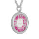 I chose gold plated so that the metal would not react with my skin oils and perspiration. But, I changed the necklace from the gold plated one to a sterling silver. My skin cells will tarnish the silver. But it will not look as bad if some portion of the gold plated necklace somehow became compromised. Zazzle did a find job turning the picture into a pendant for me. As you can see, the colors and the printing of the final product, match the preview. The picture I took is not very clear. But I am pleased with the product I received.