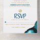 Be proud, rejoice and showcase this milestone of your favorite Bat Mitzvah! Send out this cool, unique, modern, custom all-in-one invitation for an event to remember. Dark teal blue script typography and faux gold Star of David overlay simple, clean white background with turquoise blue agate accented with faux gold veins. This all-in-one product is an unique combination of a custom invitation with an easy to tear off perforated RSVP postcard. Personalize the custom text with your Bat Mitzvah’s name, Hebrew name, date, and venue information. Guaranteed to add stylish fun to her special occasion!