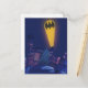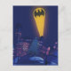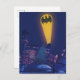 This evocative graphic captures Batman as he oversees Gotham City under the glow of the iconic Bat-Signal. Set against a dramatic night sky, the vibrant yellows and blues create a stark contrast, highlighting the city's sprawling, lit-up skyline and the silhouette of the caped crusader standing vigilant on a rooftop. The Bat-Signal cuts through the darkness, serving as a symbol of hope and a call to action, signaling Batman's unending commitment to safeguarding his city. The composition's dynamic colors and dramatic perspective not only draw attention to Batman's heroic stature but also encapsulate the perpetual struggle between light and shadow in Gotham. This artwork is a powerful portrayal of Batman’s role as the guardian of Gotham, watching over it from the shadows, ever ready to confront the chaos that lurks below.