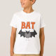 A black Halloween bat and orange text that reads "BAT" on bat t-shirts, bodysuits, mugs, cards, stickers, tote bags, buttons, magnets, and other Halloween BAT T-shirts and gifts.