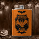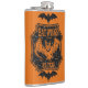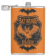 This eerie Bat Wings Elixir flask has a classic Halloween orange and black design, with spooky bat details.