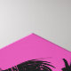 This striking graphic captures Batgirl in a powerful pose, showcasing her agility and readiness for action. The use of a vibrant pink background not only highlights Batgirl's boldness but also injects a pop of energetic color that sets this artwork apart. Rendered in a stark black silhouette with dynamic, splashy accents, the image emphasizes movement and strength. The word "BATGIRL" is integrated into the design in large, expressive letters that seem to leap forward with her, mirroring her forward momentum. This piece celebrates Batgirl's vital role in the Batman universe as a fearless and formidable heroine, making it a captivating addition for fans of the character and the broader DC Comics ensemble.