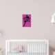This striking graphic captures Batgirl in a powerful pose, showcasing her agility and readiness for action. The use of a vibrant pink background not only highlights Batgirl's boldness but also injects a pop of energetic color that sets this artwork apart. Rendered in a stark black silhouette with dynamic, splashy accents, the image emphasizes movement and strength. The word "BATGIRL" is integrated into the design in large, expressive letters that seem to leap forward with her, mirroring her forward momentum. This piece celebrates Batgirl's vital role in the Batman universe as a fearless and formidable heroine, making it a captivating addition for fans of the character and the broader DC Comics ensemble.