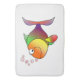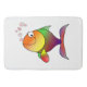 Bath Mat/Fish with Bubbles Give your feet a sweet treat right after your bath. Featuring a luxury soft memory foam, this bath mat cushions your feet and helps you feel great while you dry off and get ready to face the day. Made out of high density memory foam, this soft rug cushions your feet and feels great while you dry off and get ready for the day. Dimensions: 16” x 24” Material: 85% polyester/15% polyamide. Quick-drying foam core. SBR non-skid backing. Machine washable. Warning: For use outside of the tub. Always place bath rugs on a dry surface before use.