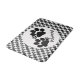 Paw Prints. Background is one seven toed paw print replicated many times at an angle. Center has white circle with left and right polydactyl paws and the word "polydactyl" at an angle.