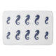 Multiple Navy Blue seahorses swimming in a line across the product (two lines of five).