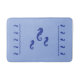 Sea horse graphic in blue. Three animals in middle of towel. Borders on sides show five seahorses in a row beneath scalloped wave pattern.