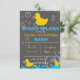 Plain white envelopes are included with paper invitations and will come to fit the invitation size you select. If you don’t need the envelopes, you may choose to not receive them by selecting the dropdown below "Envelopes" and choosing "None." If you’d like to have a design on your envelopes, you can browse all of these available envelopes to find the design that complements your Bath Time Rubber Ducky Birthday Invitation.