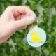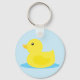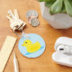 Adorable yellow rubber ducky on a blue background and soap bubbles. Perfect design for your little one's bedroom or bathroom.