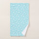 This bath towel set is shown in a cute Aqua and White polka dots print.