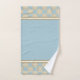 This Beautiful Bath Towel set matches an amazing Shower curtain and bathmat. It has lacey cream medallions in shades of cream on a sky-blue background. The Medallions images come from an actual handmade tile by Orego n tile maker Fay Jones Day.