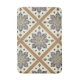 This Bathmat features multi-colored medallions laid diagonally. Between the Medallions is a rich tan border that divides and frames them to create a trellis event. These are based on actual tiles designed by Oregon Tile maker Fay Jones Day