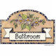 Bathroom Door sign. Beige background with floral decoration