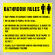 Bathroom Rules Don't make eye contact when using the urinals, no talking to people in the stall, no running unless you accidentally clogged the toilet. Then get out before anyone sees it was you. No asking stall-mates for more toilet paper. If you run out just accept your fate and weep silently. Please keep your poop grunts and other noises to a reasonable volume.
