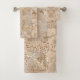 I can't definitively describe the artwork on this bathroom set without an image, but based on the description, we can likely imagine it featuring a design inspired by Gustav Klimt's mosaic artwork and the imagery of the "Rave Man." Klimt was known for his use of swirling patterns, rich colors, and gold leaf. The "Rave Man" might be a reinterpretation of a mythological figure or a more modern depiction of a partygoer. So, the bathroom set could potentially combine Klimt's opulent style with a more contemporary club culture vib