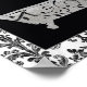 © Susan Eby Glass / Wild Apple. A contemporary French bathtub in black and white. Black and white floral patterns surround the image.
