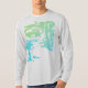 Light and pastel in color. A batik-like, contemporary design in shades of light green and aqua features an abstract pattern, which combines transparent areas with the background color of the shirt (pictured here on "ash," long-sleeved). A creative, relaxed, beachy, and tropical look to brighten your casual and everyday wear, whether hanging out at home or with friends, playing sports, or going about town. Given the shirt lends an artistic vibe and individualized style, this contributes to a feeling of being "put together," which can be especially invigorating for those who work remotely and/or spend a lot of time at home.