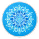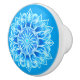 Knob in a batik textured mandala / medallion pattern in shades of aqua, turquoise and cobalt blue on a turquoise background