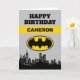 Celebrate in superhero style with this dynamic Batman Gotham City birthday card! Featuring the iconic Gotham skyline and the Bat-Signal glowing against the night sky, this card is perfect for fans of the Caped Crusader. Its bold design and customizable text make it a fun and memorable way to send birthday wishes for an action-packed day.