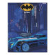 This graphic vividly captures Batman speeding through the neon-lit streets of Gotham City in his iconic Batmobile. Above him, the Bat-Signal shines brightly against a deep blue sky, calling him to duty. The artwork uses a striking color palette of blues and vibrant yellow highlights, emphasizing the high-speed energy and the futuristic aesthetic of the Batmobile. The urban landscape of Gotham is rendered with bold, exaggerated forms, giving the scene a dynamic and slightly surreal feel. This illustration not only celebrates Batman's role as the guardian of Gotham but also his reliance on technology and cunning to maintain order in a city that never sleeps. The image is a thrilling representation of Batman in action, perfectly blending elements of danger, heroism, and adventure.