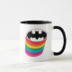 DC Pride | Batman's iconic logo with layers of rainbow colors projected behind it.