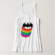 DC Pride | Batman's iconic logo with layers of rainbow colors projected behind it.