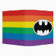 DC Pride | Batman's iconic logo with layers of rainbow colors inside it.
